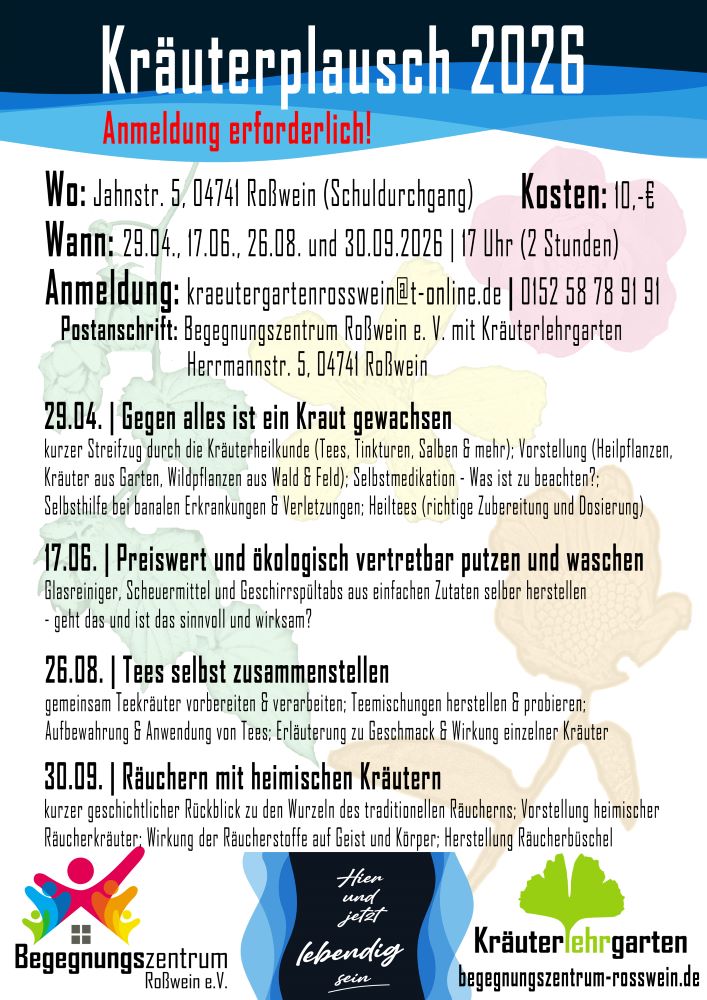 Was lange währt, wird hoffentlich gut. Die Termine für die Veranstaltung Kräuterplausch 2026 stehen jetzt fest.